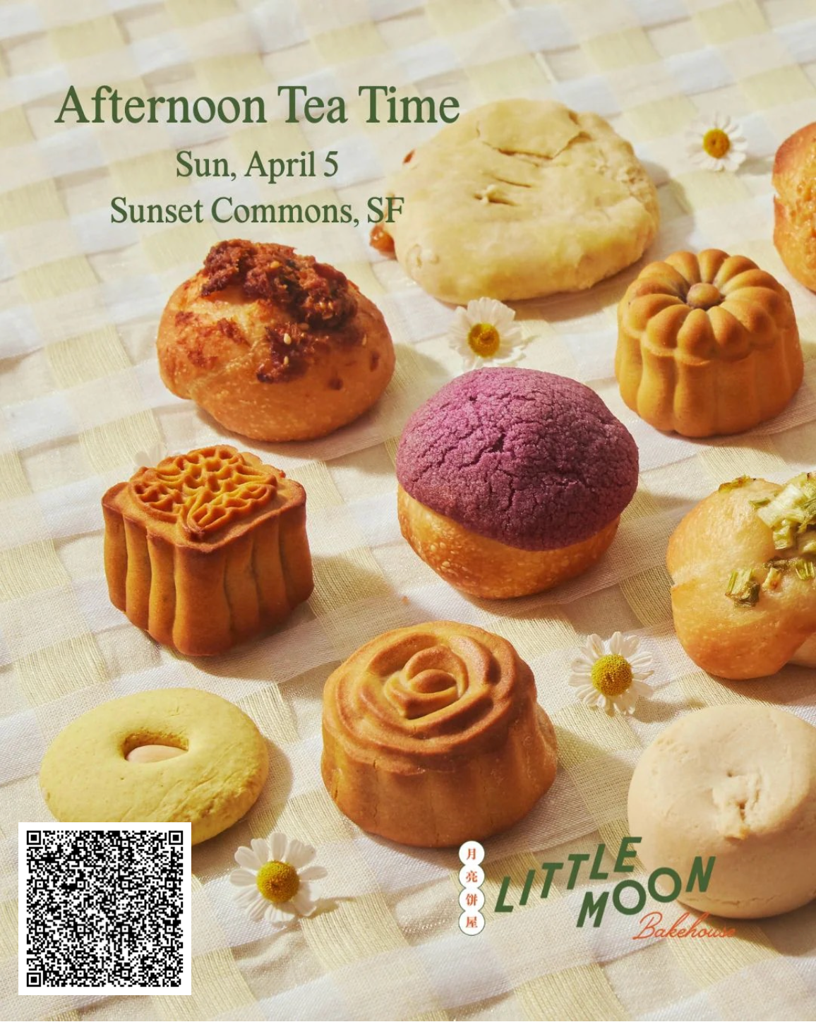 Join us at Sunset Commons for an intimate tea time service - hosted by East Bay's famous Little Moon Bakehouse! Each ticket reserves one seat, a suite of artisan HK & Taiwanese pastries, & endless refills of Moonlit tea!