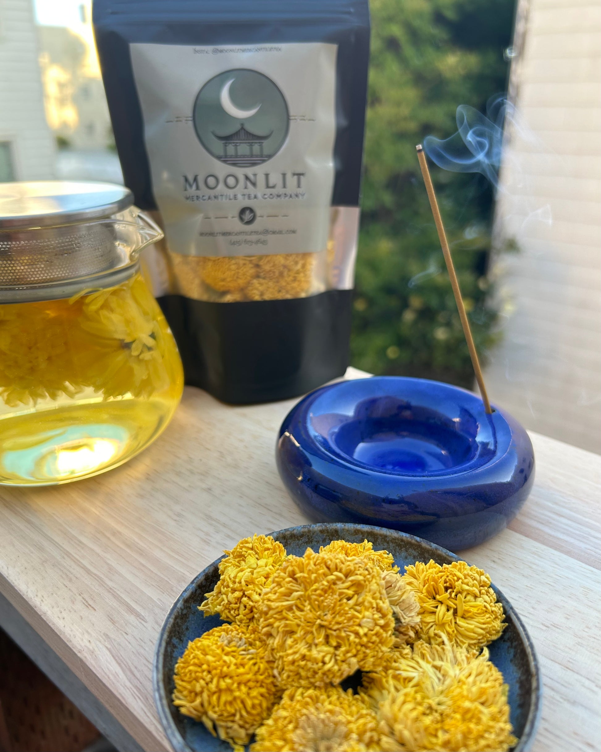 We were so happy to get this shipment in; not only is chrysanthemum one of Moonlit's favorite, traditional teas, but it also just feels really nice handing people a "bouquet" of golden flowers.