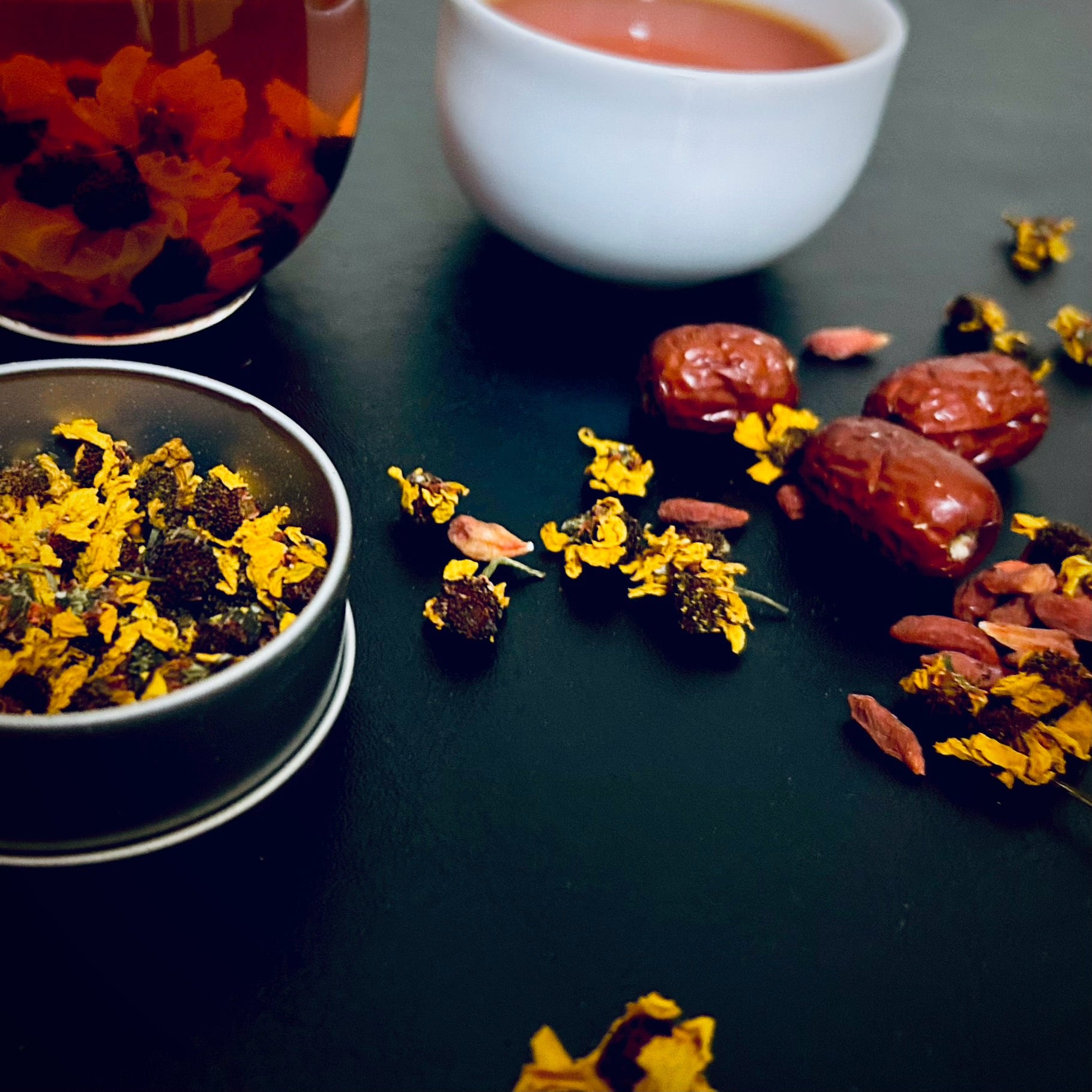 A stunning & rare Chinese varietal of chrysanthemum from the high altitude winterscape of the Kunlun Mountains. Hard to find since, as per namesake, this herbal tea can only bloom and harvest in the cold of winter!